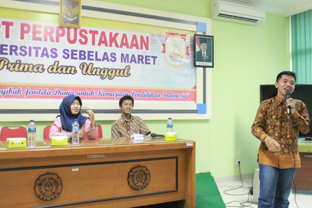 FKSEK KOPMA UNS – Kamis, 5 April 2018 FKSEK KOPMA UNS mengadakan Ngobrol Pintar (NGOPI) mengenai Cara Sukses Raih PWM. Acara yang diselenggarakan di Ruang Nakula Perpustakaan Lantai 2 Universitas Sebelas Maret ini menghadirkan dua pembicara yaitu N. Santlimardek dan Dyah Kusumaning Ayu Putrilani. Acara Ngopi dikemas secara menarik dan santai dengan balutan candaan yang mengundang tawa bagi para peserta yang mengikuti acara NGOPI FKSEK. Tujuannya supaya para peserta tidak merasa bosan. Acara yang dimoderatori oleh Muhamad Ridwan Herdika ini berhasil membuat peserta antusias dengan banyaknya pertanyaan yang ditujukan kepada pembicara.